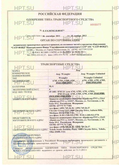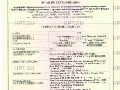| Коммерческое наименование | Jeep Wrangler ; Jeep Wrangler Unlimited. Тип ТС: Wrangler ; Wrangler Unlimited |