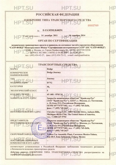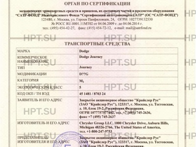 Коммерческое наименование Dodge Journey. Тип ТС: Journey