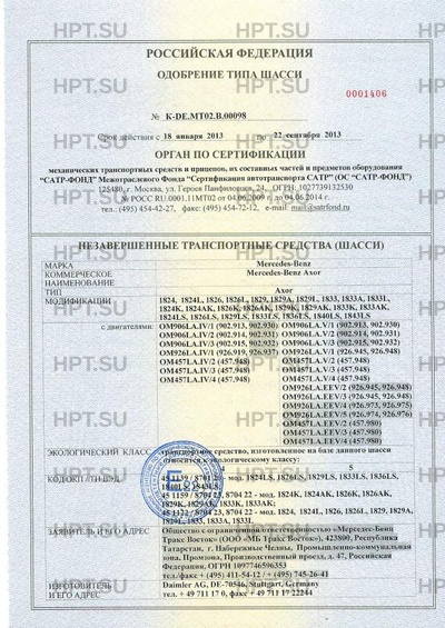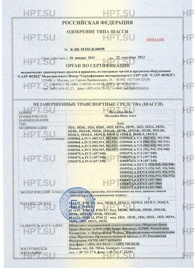 | Заявитель | Общество с ограниченной ответственностью «Мерседес-Бенц Тракс Восток» (ООО «МБ Тракс Восток»), 423800, Республика Татарстан, г. Набережные Челны, Промышленно-коммунальная зона, Промзона, Производственный проезд, д. 47, Российская Федерация, ОГРН 1097746596353 тел./факс + (495) 411-54-12 / + (495) 745-26-41 |