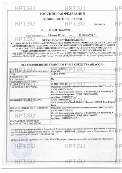 | Коммерческое наименование | Eagle 816. Тип ТС: ALPSV 3/82?? |