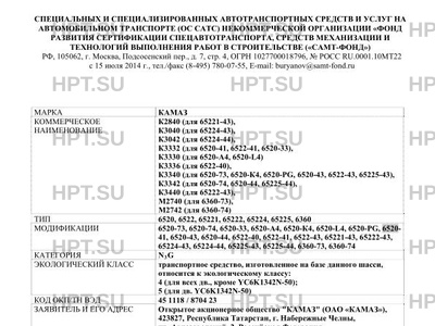 | Тип ТС | Вариант изготовления: шасси с кабиной и двигателем. Конструкция допускает возможность передвижения шасси своим ходом по дорогам общего пользования. Перевод буквенно-цифрового обозначения модификаций в вариант обозначения для формализованного (цифрового) кода продукции в процессе производства и отгрузки в соответствии с системой SAP (System Analysis and Program Development) указана в таблице ниже: Буквенно-цифровое обозначение модификаций Вариант обозначения модификаций в виде формализованного (цифрового) кода 6520-А4 6520-23 6520-L4 6520-19 6520-K4 6520-29 6520-PG 6520-89 |