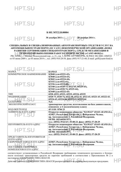 | Коммерческое наименование | К2840 (для 65221-43), К3040 (для 65224-43), К3042 (для 65224-44), К3332 (для 6522-41), К3336 (для 6522-40), К3340 (для 6520-73, 6522-43, 65225-43), К3342 (для 6520-74, 65225-44), К3440 (для 65222-43). Тип ТС: 6520, 6522, 65221, 65222, 65224, 65225 |
