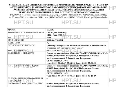 | Коммерческое наименование | С1530 (для 5308-А4); С1524 (для 5308-R4). Тип ТС: 5308 |