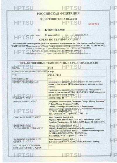 | Заявитель | Закрытое Акционерное Общество "Форд Мотор Компани" ("Форд Мотор Компани" ЗАО), 188640, Ленинградская область, г. Всеволожск, промзона "Кирпичный Завод", 1, Российская Федерация, ОГРН № 1024700554372 от 26.07.2002 г., Тел.: (812) 346 71 11, факс: (812) 346 71 12. _. |
