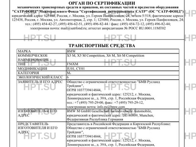 - Коммерческое наименование: X5 M, X5 M Competition, X6 M, X6 M Competition