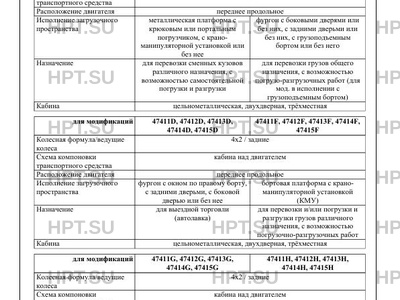 - Модификации: 474110, 47411А, 47411В, 47411С, 47411D, 47411Е, 47411F, 47411G, 47411H, 47411J,…