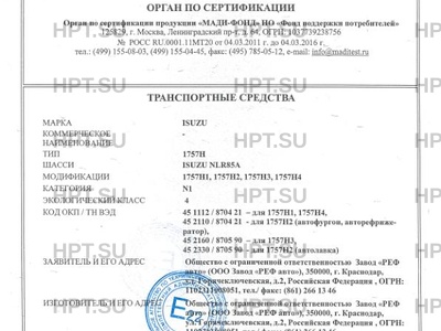 - Коммерческое наименование: мусоровоз, мультилифт, комбинированная дорожная машина