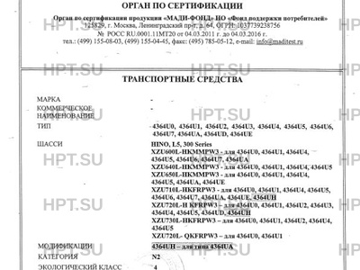 - Шасси: HINO, L5, 300 Series XZU600L-HKMMPW3 - для 4364U0, 4364U1, 4364U4, 4364U5, 43…