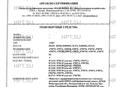 - Категория: N2 - для всех на шасси ISUZU, кроме ISUZU NPS75L-?; N2G -на шасси ISUZU NPS75L…