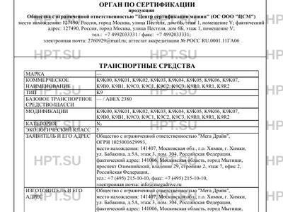 - Коммерческое наименование: K9K00, K9K01, K9K02, K9K03, K9K04, K9K05, K9K06, K9K07, K9B0, K9B1, K9C0, K9C1,…