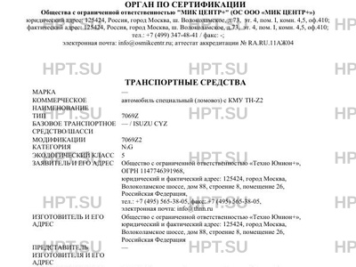 - Тип: 7069Z БАЗОВОЕТРАНСПОРТНОЕ СРЕДСТВО/ШАССИ -/ISUZUCYZ