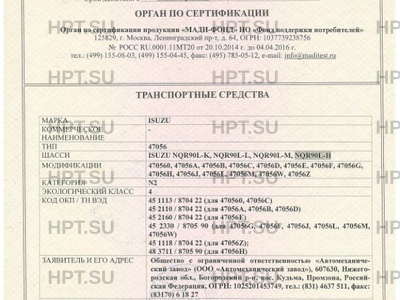 - Шасси: ISUZU NQR90L-K, NQR90L-L, NQR90L-M, NQR90L-H
