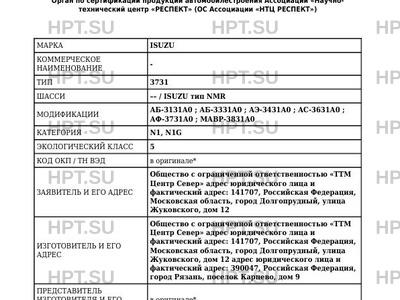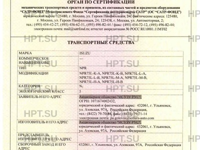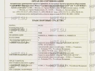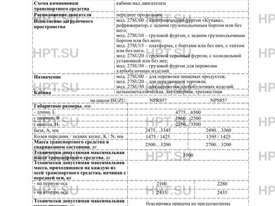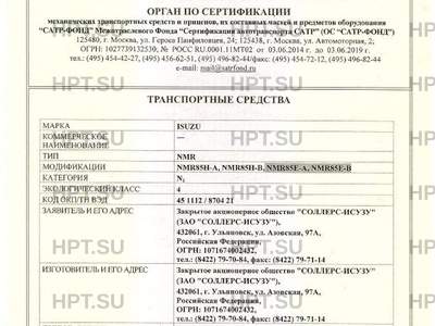 - Категория: N1 - на шасси ISUZU NMR85H, NMR85Е; N1G - на шасси ISUZU NMS85H, NMS85Е