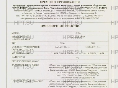 - Коммерческое наименование: LADA GRANTA LADA KALINA; 2190 2191 2192 2194