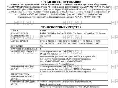 - Коммерческое наименование: LADA GRANTA, LADA GRANTA Учебный, LADA GRANTA Ручное управление "LADA GRANTA Уч…