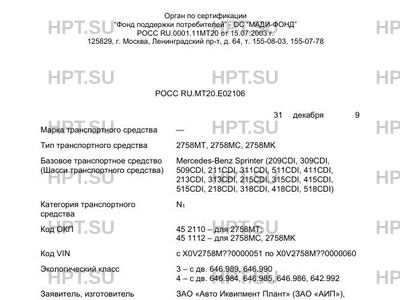 - Коммерческое наименование: Sprinter (309CDI, 311CDI, 313CDI, 315CDI, 318CDI, 319CDI, 316, 316NGT, 324, 4…