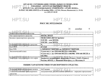 - Тип: 283220, 283221 на шасси MERCEDES-BENZ Sprinter: 313CDI – для 283220; 315CDI – д…