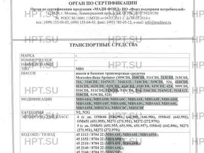 Хотите вписать в ПТС переоборудование Мерседес Спринтер? Желаете заменить двигатель на Mercedes Sprinter или вписать в ПТС в Мерседес Спринтер ГБО? Собранные здесь Одобрения типа ТС на Mercedes Sprinter могут оказаться небесполезны, если предстоит регистрация переоборудования Мерседес Спринтер всевозможных времён выпуска и комплектаций. Мы регулярно наполняем базу Одобрений типа ТС на Mercedes Sprinter, чтобы сделать их максимально доступными и полезными.
