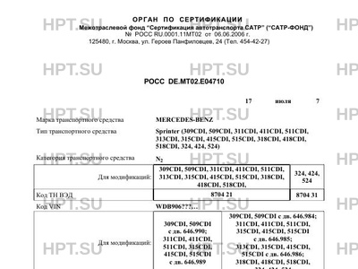 - Коммерческое наименование: Sprinter (309CDI, 509CDI, 311CDI, 411CDI, 511CDI, 313CDI, 315CDI, 415CDI, 515CD…