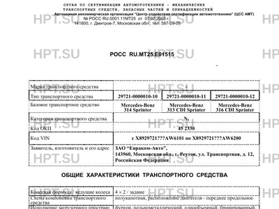 - Коммерческое наименование: Sprinter 511 CDI , Sprinter 515 CDI на базе автомобиля MERCEDES-BENZ Sprinter (…