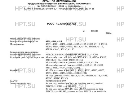 - Экологический класс: 4 (для мод. на шасси 309CDI, 311CDI, 313CDI, 315CDI, 318CDI, 411CDI, 415CDI, 41…