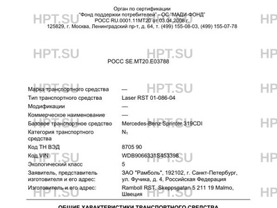 - Коммерческое наименование: Автомобили-фургоны МЗСА-370110, МЗСА-370111 на шасси Мersedes-Benz TIN "Sprinte…