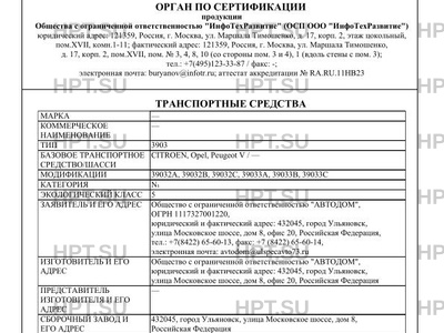 - Шасси: Базовые транспортные средства Peugeot Y (Boxer): YEZMFC/BX, YEZMFC/BX1 (для L3…