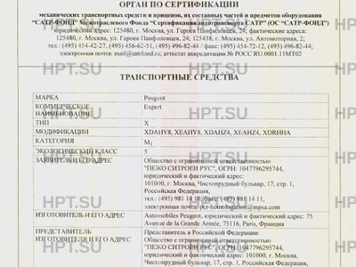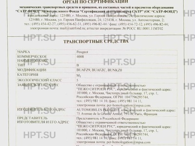 - Коммерческое наименование: 308, RCZ. Тип ТС: 4