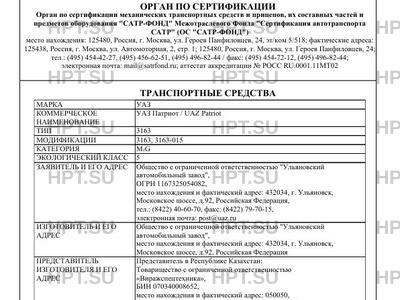 - Коммерческое наименование: УАЗ Патриот / UAZ Patriot 3163