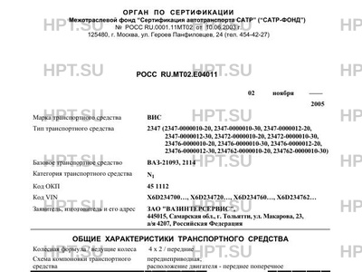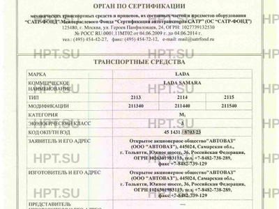 - Коммерческое наименование: LADA SAMARA. Тип ТС: 2113; 2114; 2115