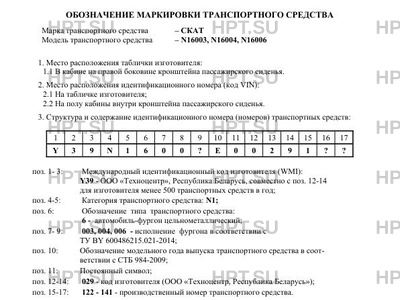 - Коммерческое наименование: Автомобиль грузовой; -; N16003, N16004, N16006