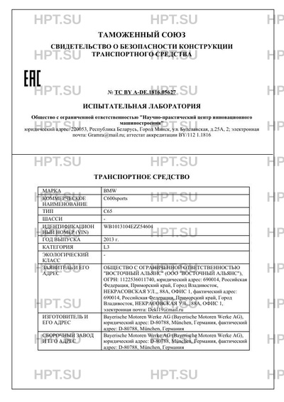 | Номер документа | ТС BY А-DE.1816.05627 |