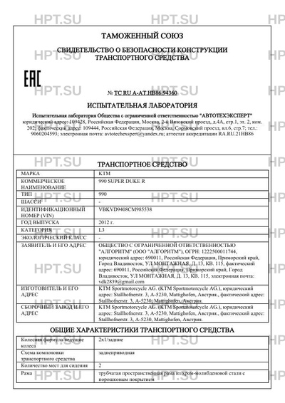 | Номер документа | ТС RU А-AT.НВ86.94360 |
