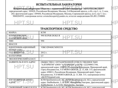 | Коммерческое наименование | 990 SUPER DUKE R |