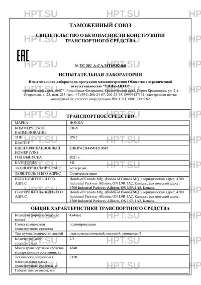 | Коммерческое наименование | CR-V |