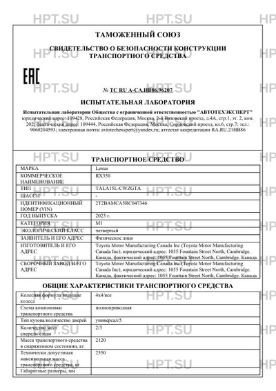 | Марка ТС | Lexus |