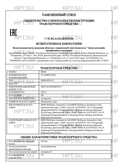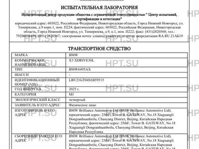 Предприятие-изготовитель BMW Brilliance Automotive Ltd (BMW Brilliance Automotive Ltd), юридический адрес: 25thF, Tower В. GATEWAY, No.18 Xiaguangli Dongsanhuanbeilu, Chaoyang District, Beijing, Китайская Народная Республика, фактический адрес: 25thF, Tower В. GATEWAY, No.18 Xiaguangli Dongsanhuanbeilu, Chaoyang District, Beijing, Китайская Народная Республика