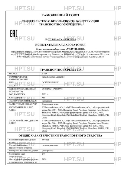 Коммерческое наименование | Fangchengbao Leopard 5 |