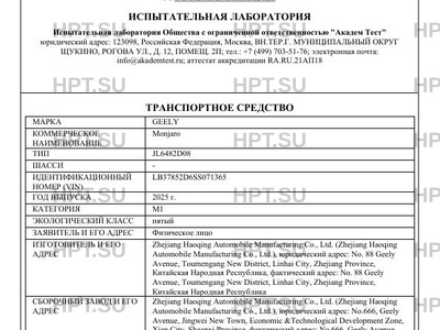 | Предприятие-изготовитель | Zhejiang Haoqing Automobile Manufacturing Co., Ltd. (Zhejiang Haoqing Automobile Manufacturing Co., Ltd.), юридический адрес: No. 88 Geely Avenue, Toumengang New District, Linhai City, Zhejiang Province, Китайская Народная Республика, фактический адрес: No. 88 Geely Avenue, Toumengang New District, Linhai City, Zhejiang Province, Китайская Народная Республика |