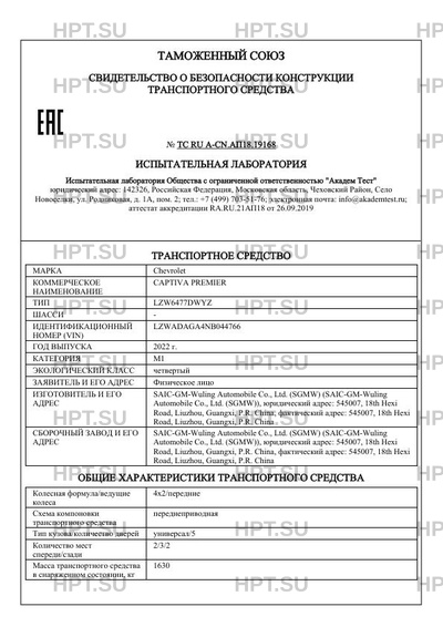 Коммерческое наименование CAPTIVA PREMIER