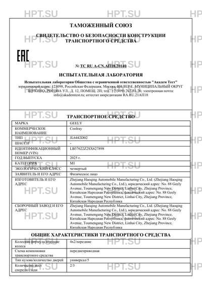 Предприятие-изготовитель Zhejiang Haoqing Automobile Manufacturing Co., Ltd. (Zhejiang Haoqing Automobile Manufacturing Co., Ltd.), юридический адрес: No. 88 Geely Avenue, Toumengang New District, Linhai City, Zhejiang Province, Китайская Народная Республика, фактический адрес: No. 88 Geely Avenue, Toumengang New District, Linhai City, Zhejiang Province, Китайская Народная Республика