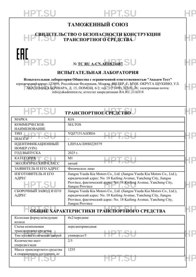 Предприятие-изготовитель Jiangsu Yueda Kia Motors Co., Ltd. (Jiangsu Yueda Kia Motors Co., Ltd.), юридический адрес: No. 18 Kaifeng Avenue, Yancheng City, Jiangsu Province, фактический адрес: No. 18 Kaifeng Avenue, Yancheng City, Jiangsu Province