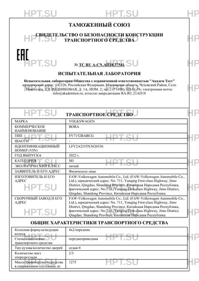 | Номер документа | ТС RU А-CN.АП18.37541 |