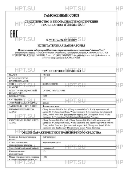Полное СБКТС ТС RU A-CN.АП18.55167