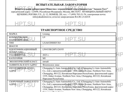 | Предприятие-изготовитель | Chongqing Li Auto Automobile Co., Ltd. (Chongqing Li Auto Automobile Co., Ltd.), юридический адрес: 1539, Jinkai Avenue, Northern New Area, Chongqing, 401122, Китайская Народная Республика, фактический адрес: 1539, Jinkai Avenue, Northern New Area, Chongqing, 401122, Китайская Народная Республика |