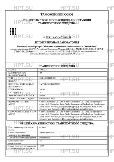 Предприятие-изготовитель Chery Automobile Co., Ltd. (Chery Automobile Co., Ltd.), юридический адрес: № 8 Changchun Road, Wuhu Economy and Technology Development Zone, Anhui Province, фактический адрес: № 8 Changchun Road, Wuhu Economy and Technology Development Zone, Anhui Province