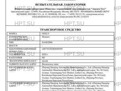 | Предприятие-изготовитель | Zhejiang Haoqing Automobile Manufacturing Co., Ltd. (Zhejiang Haoqing Automobile Manufacturing Co., Ltd.), юридический адрес: No. 88 Geely Avenue, Toumengang New District, Linhai City, Zhejiang Province, Китайская Народная Республика, фактический адрес: No. 88 Geely Avenue, Toumengang New District, Linhai City, Zhejiang Province, Китайская Народная Республика |