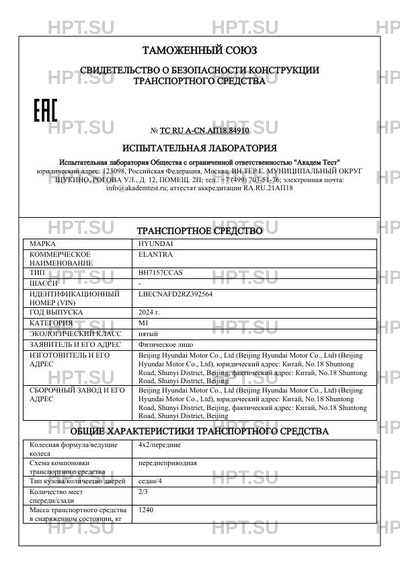 | Предприятие-изготовитель | Beijing Hyundai Motor Co., Ltd (Beijing Hyundai Motor Co., Ltd) (Beijing Hyundai Motor Co., Ltd), юридический адрес: Китай, No.18 Shuntong Road, Shunyi District, Beijing, фактический адрес: Китай, No.18 Shuntong Road, Shunyi District, Beijing |