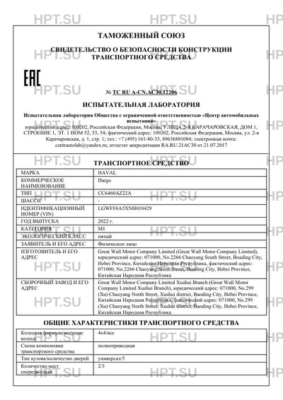 | Предприятие-изготовитель | Great Wall Motor Company Limited (Great Wall Motor Company Limited), юридический адрес: 071000, No.2266 Chaoyang South Street, Boading City, Hebei Province, Китайская Народная Республика, фактический адрес: 071000, No.2266 Chaoyang South Street, Boading City, Hebei Province, Китайская Народная Республика |