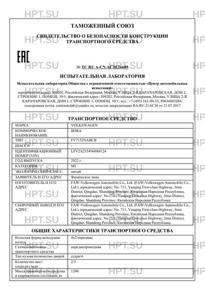 | Номер документа | ТС RU А-CN.АС30.26609 |